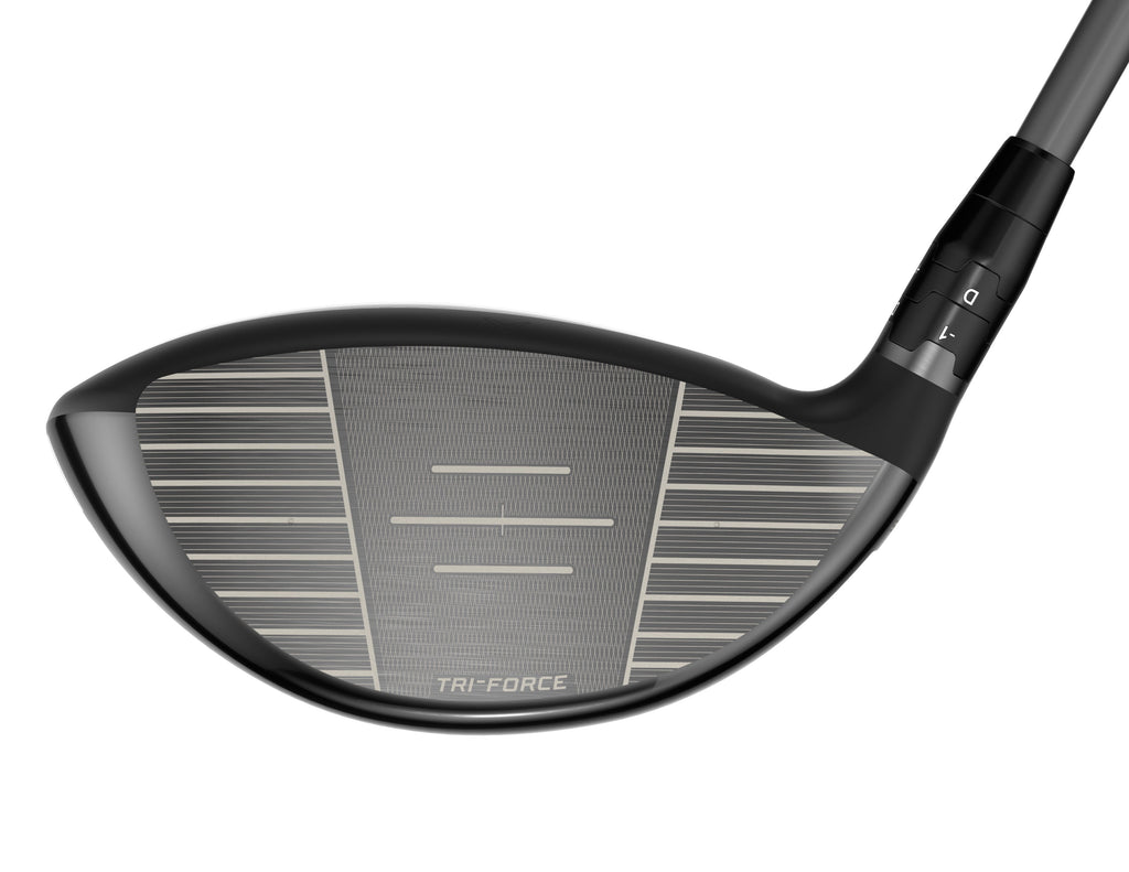 Velocidad y distancia increíbles, incluso en golpes desviados, gracias a una innovadora cara Tri-Force que combina titanio ultrafino de alta resistencia, malla de polietileno y fibra de carbono en un sistema de velocidad totalmente integrado, una combinación nunca antes utilizada en el diseño de caras de driver.