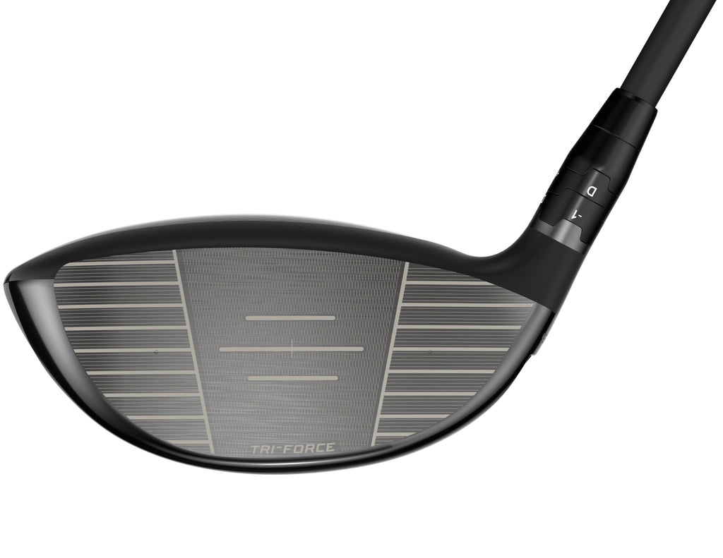 Velocidad y distancia increíbles, incluso en golpes descentrados, gracias a la innovadora cara Tri-Force que combina titanio ultrafino de alta resistencia, malla de polietileno y fibra de carbono en un sistema de velocidad totalmente integrado, una combinación nunca antes utilizada en el diseño de caras de driver.